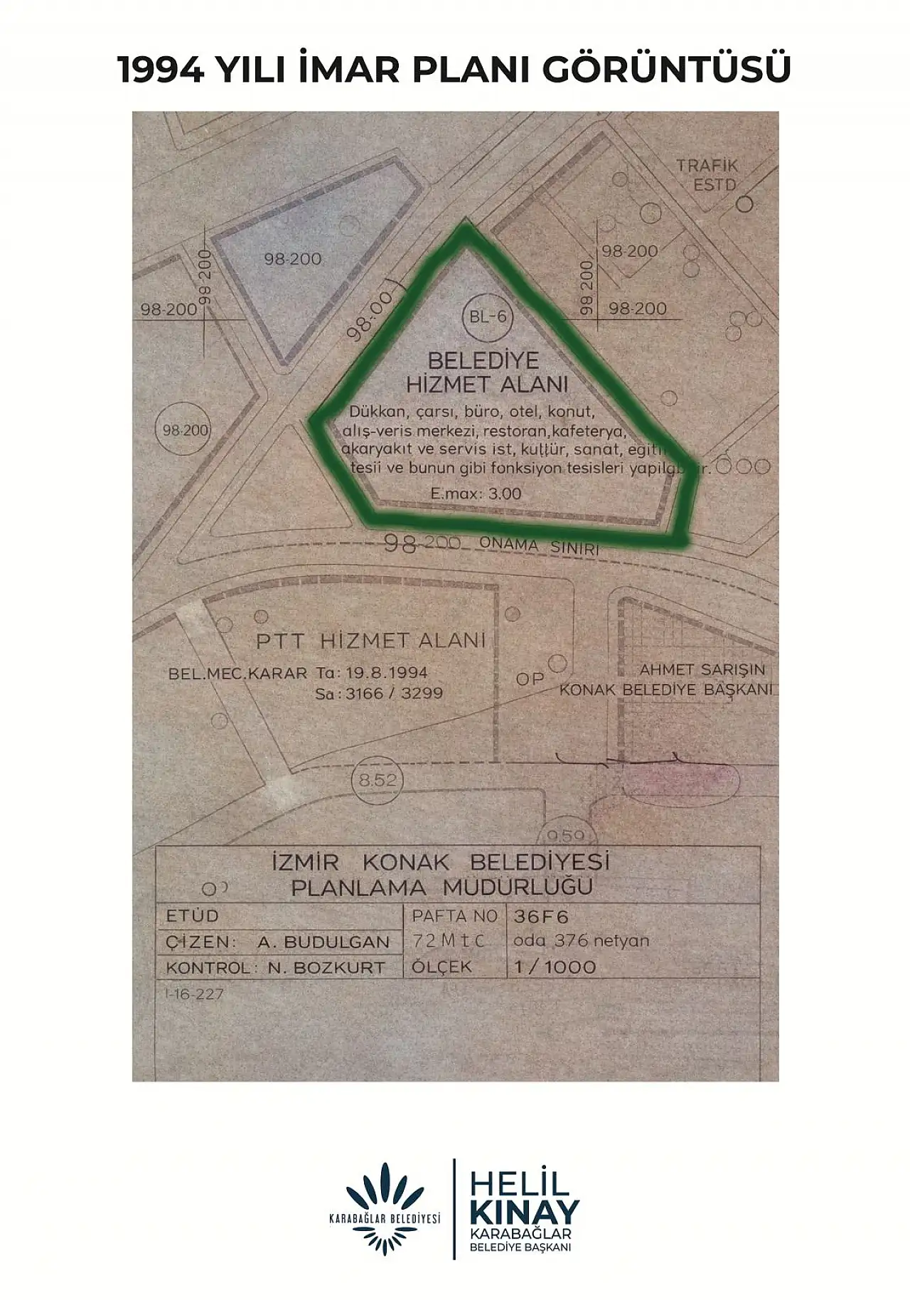 Belediye açıklamasında, söz konusu taşınmazın 1984 tarihli 1/1000 ölçekli uygulama imar planında “Belediye Hizmet Alanı” olarak yer aldığı, 1994 yılında plan notu eklenerek akaryakıt ve servis istasyonu yapılmasına imkân tanındığı belirtildi.