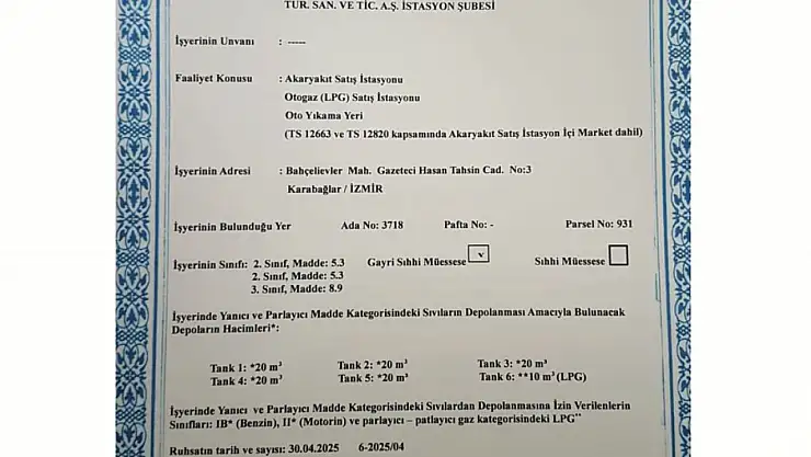Ancak KOCAERLER Akaryakıt A.Ş. tarafından açılan dava sonucunda İzmir 7. İdare Mahkemesi 31 Aralık 2025 tarihinde ruhsatın iptaline karar verdi.