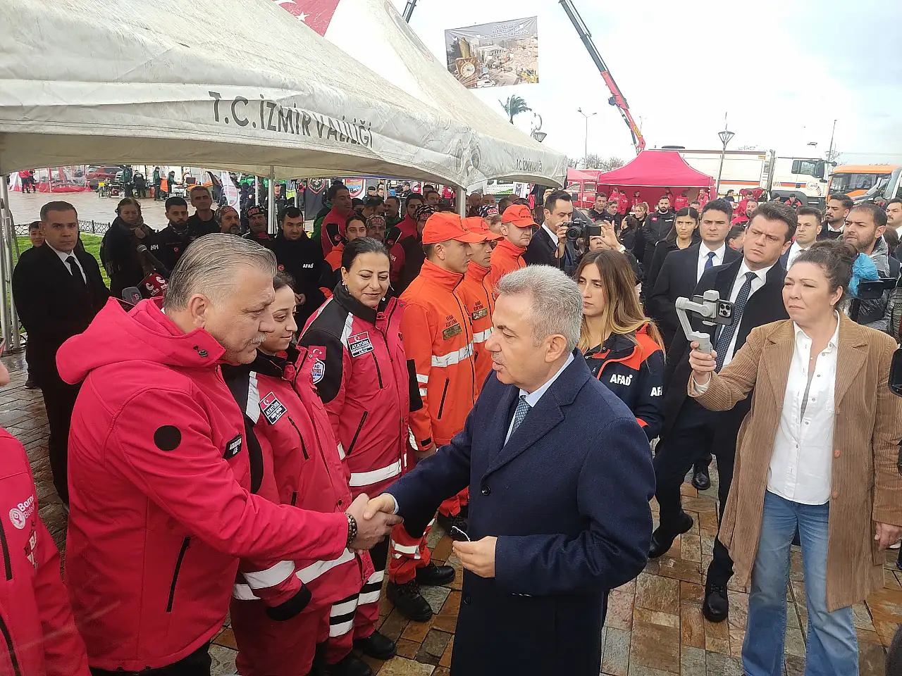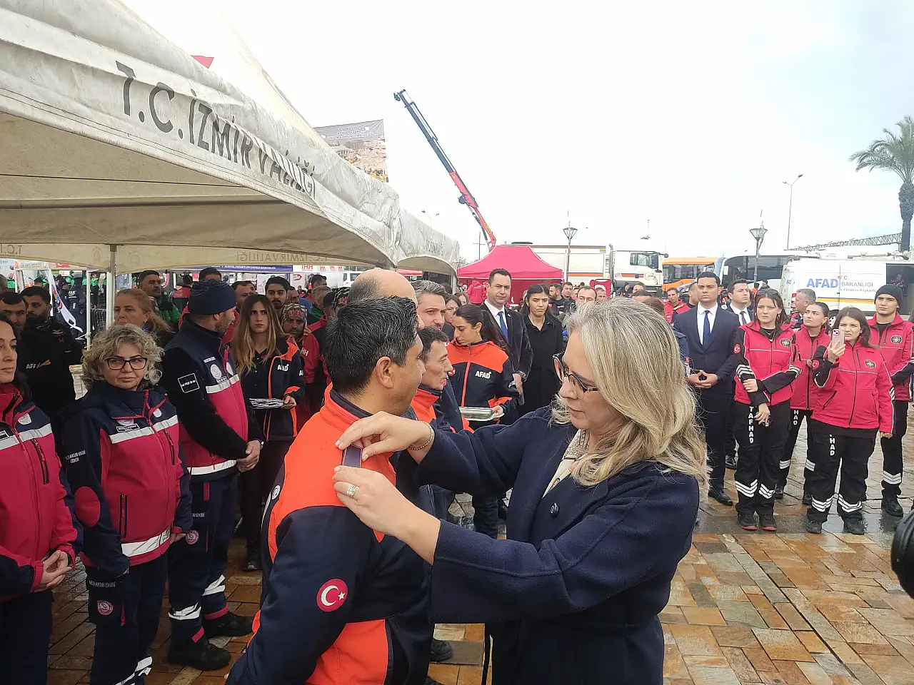 6 Şubat depremlerinin yıl dönümünde İzmir'de anma: AFAD ekiplerine arma takdim edildi
