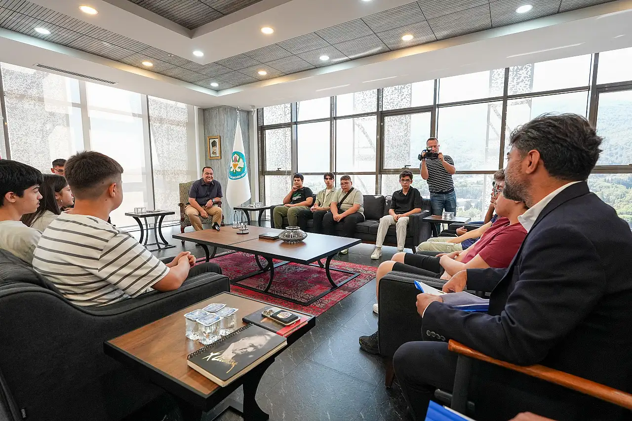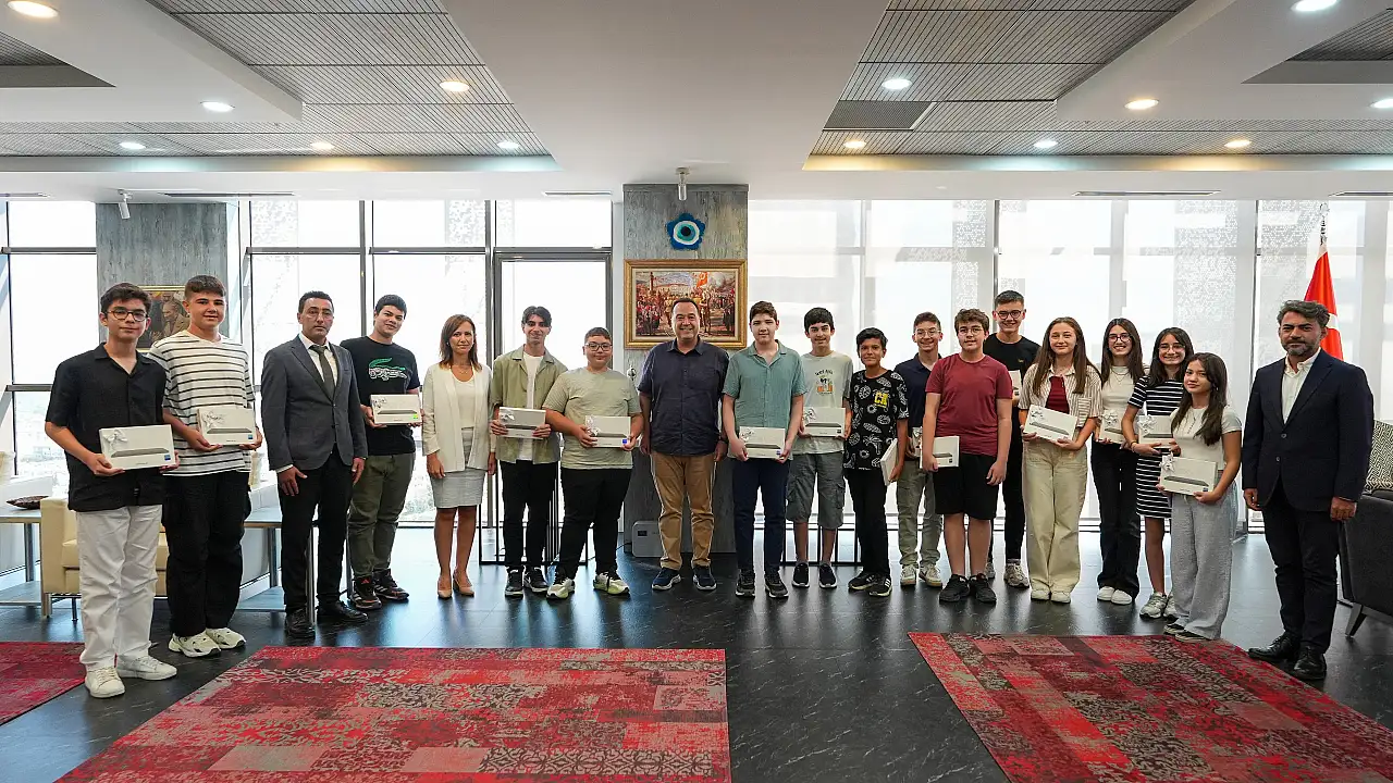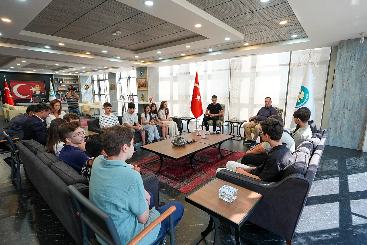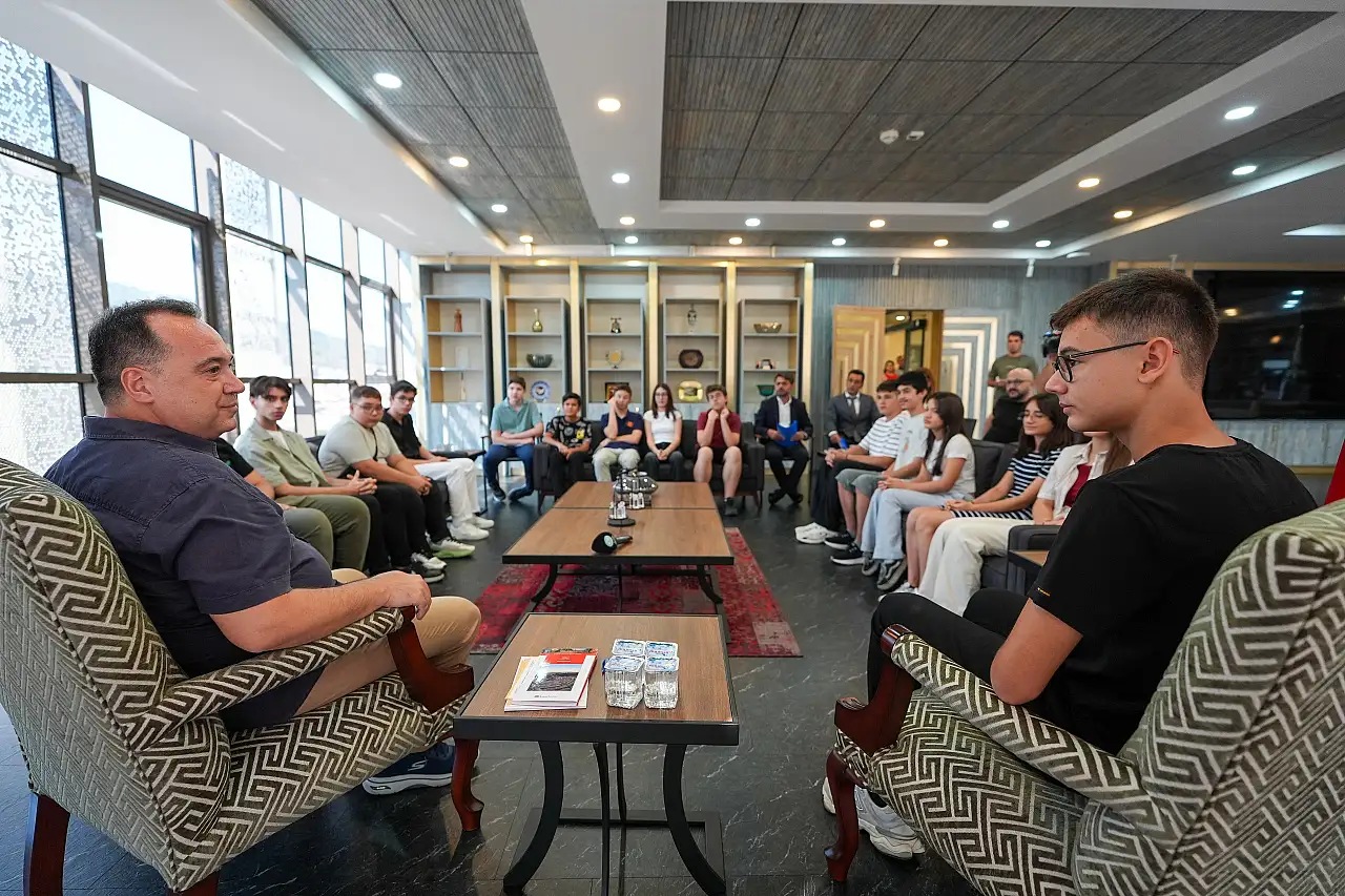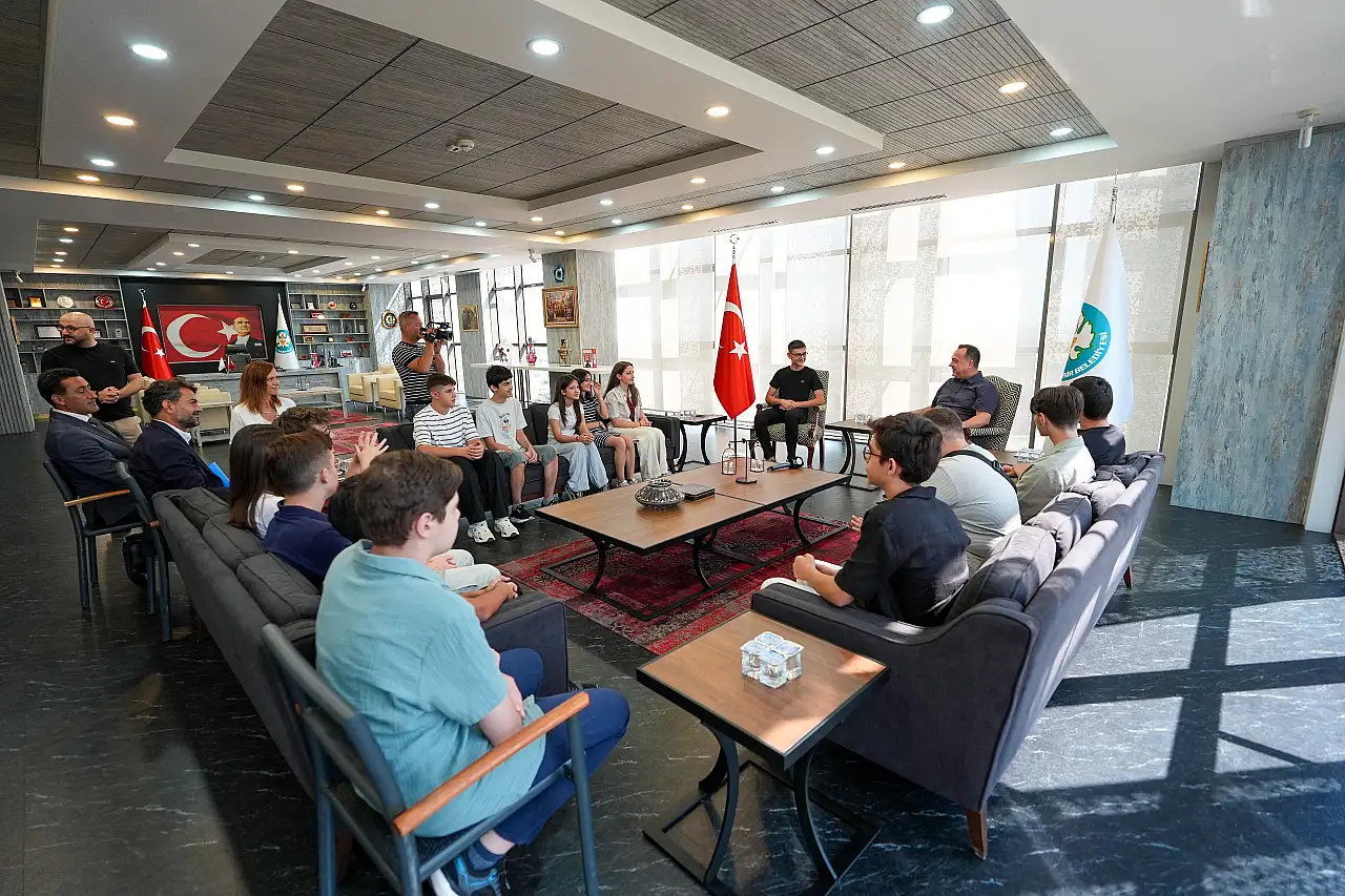 Manisa Büyükşehir Belediyesi Eğitim Merkezi'nde (MABEM) aldıkları eğitimle Liselere Geçiş Sınavı’nda (LGS) önemli başarılar elde eden 15 öğrenci, Manisa Büyükşehir Belediye Başkanı Besim Dutlulu tarafından makamında ağırlandı. Ziyarette öğrencilere hediyeler takdim eden Başkan Dutlulu, hem öğrencileri hem de ailelerini tebrik etti.