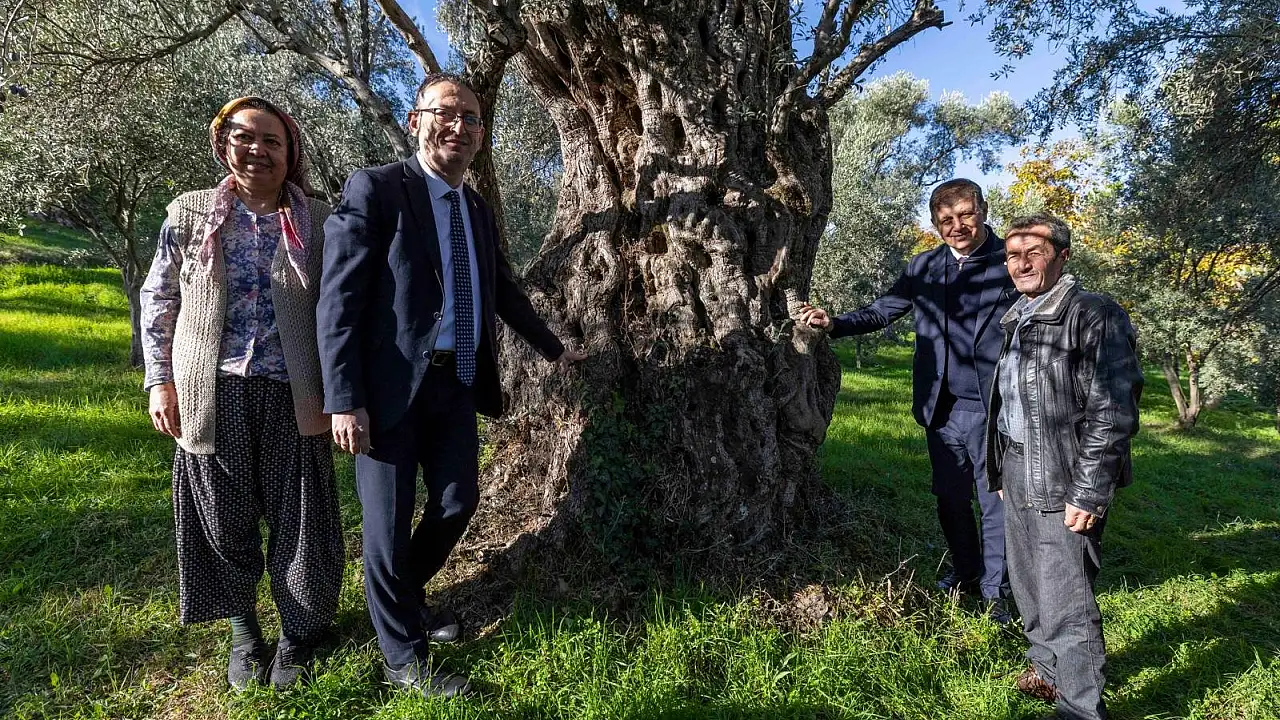 Köy meydanında geleneksel fırınlarda pişirilen kestaneleri inceleyen Başkan Tugay, zeytin hasadına katıldı ve zeytin fidanı dikti.