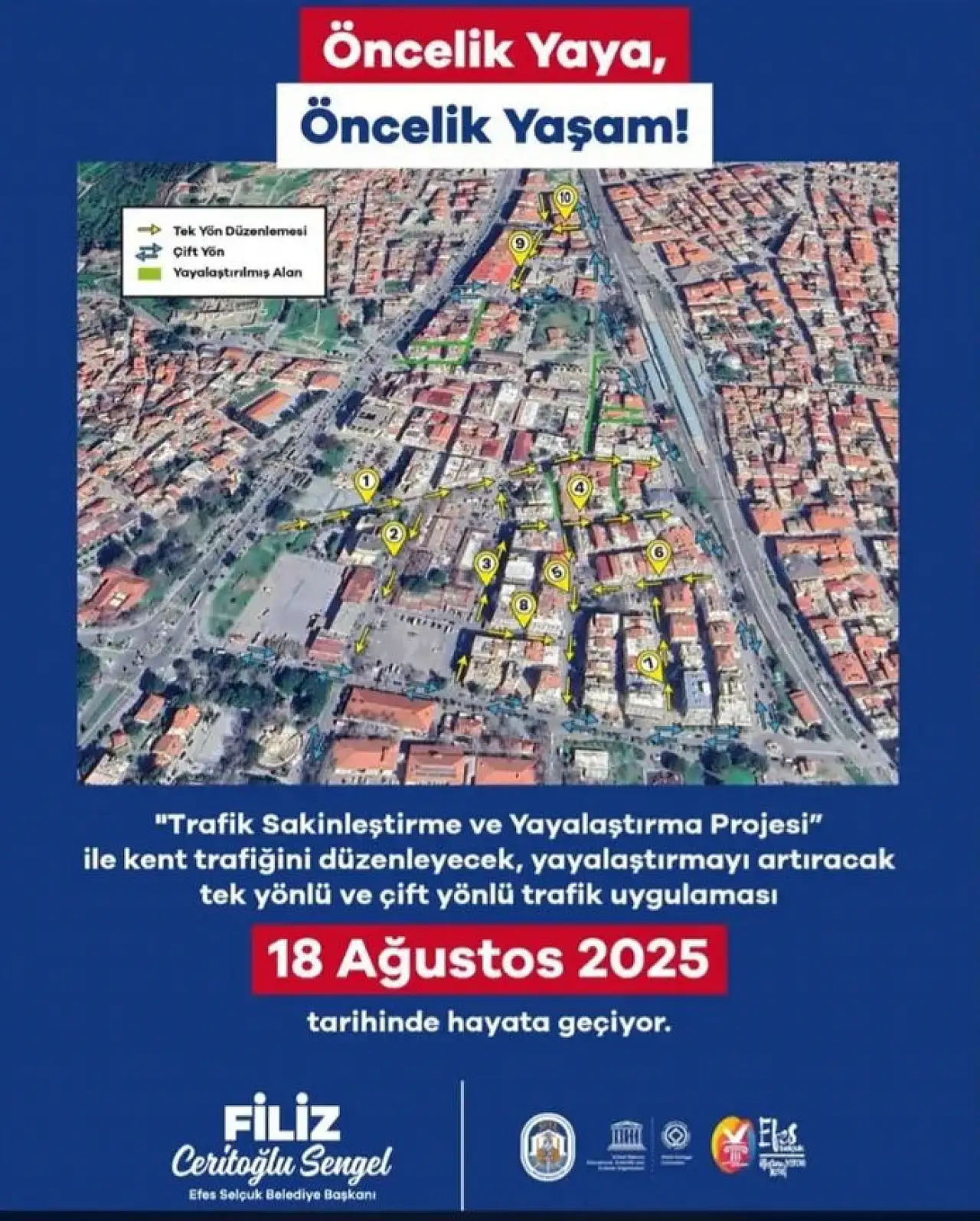 Efes Selçuk Belediyesi, kent içi trafiği daha düzenli ve güvenli hale getirmek amacıyla 'Trafik Sakinleştirme ve Yayalaştırma Projesi'ni hayata geçirdi.