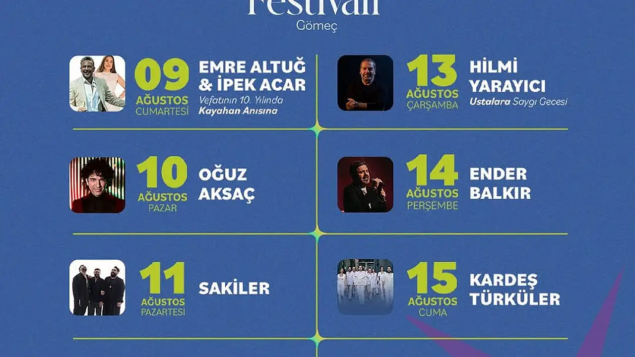 Sanat, müzik ve barışın iç içe geçtiği festivalde; tiyatro gösterileri, konserler, söyleşiler, atölyeler ve birçok kültürel etkinlik yer alacak. Festival, her yaştan katılımcıya hitap eden dopdolu programıyla Gömeç halkına ve bölge ziyaretçilerine unutulmaz bir hafta yaşatacak.