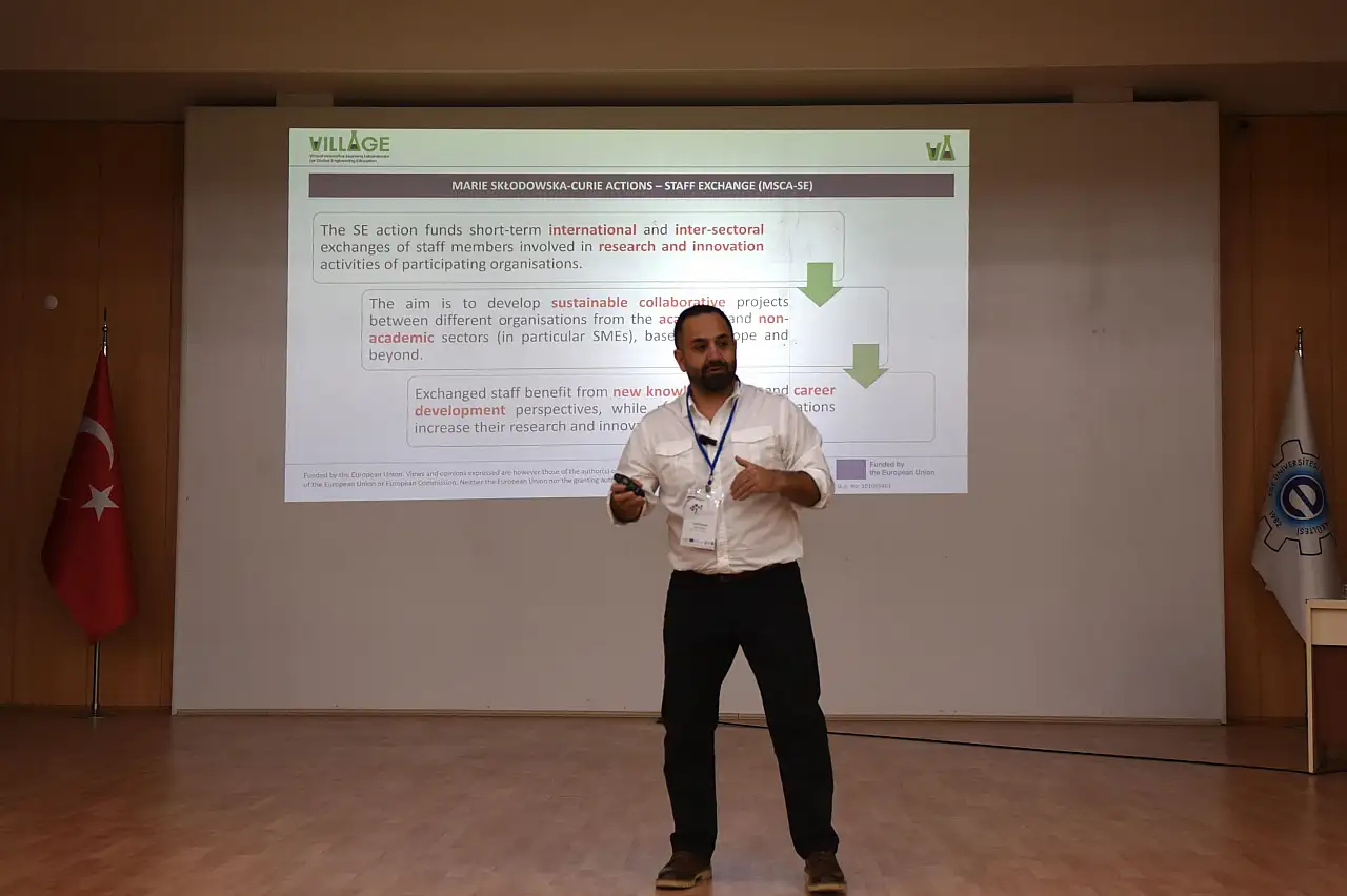 Doç. Dr. Fırat Sarsar koordinatörlüğünde yürütülen Avrupa Birliği destekli VILLAGE (Virtual Innovative Learning Laboratories for Global Engineering Education) projesi, sempozyumda detaylı olarak tanıtıldı.