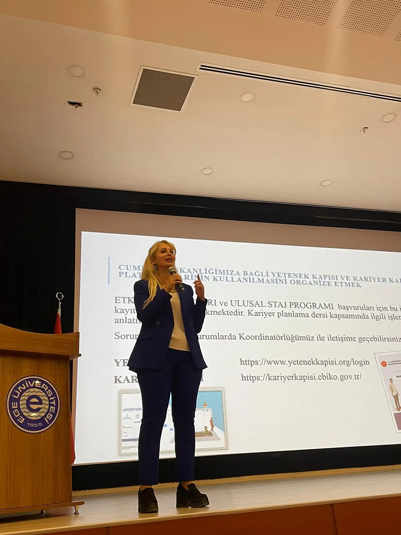 Öğr. Gör. Ebru Kalyoncu, Ege Üniversitesi’nin Türkiye’de kariyer geliştirme alanında öncü bir konuma sahip olduğunu vurguladı.