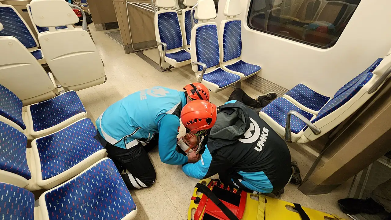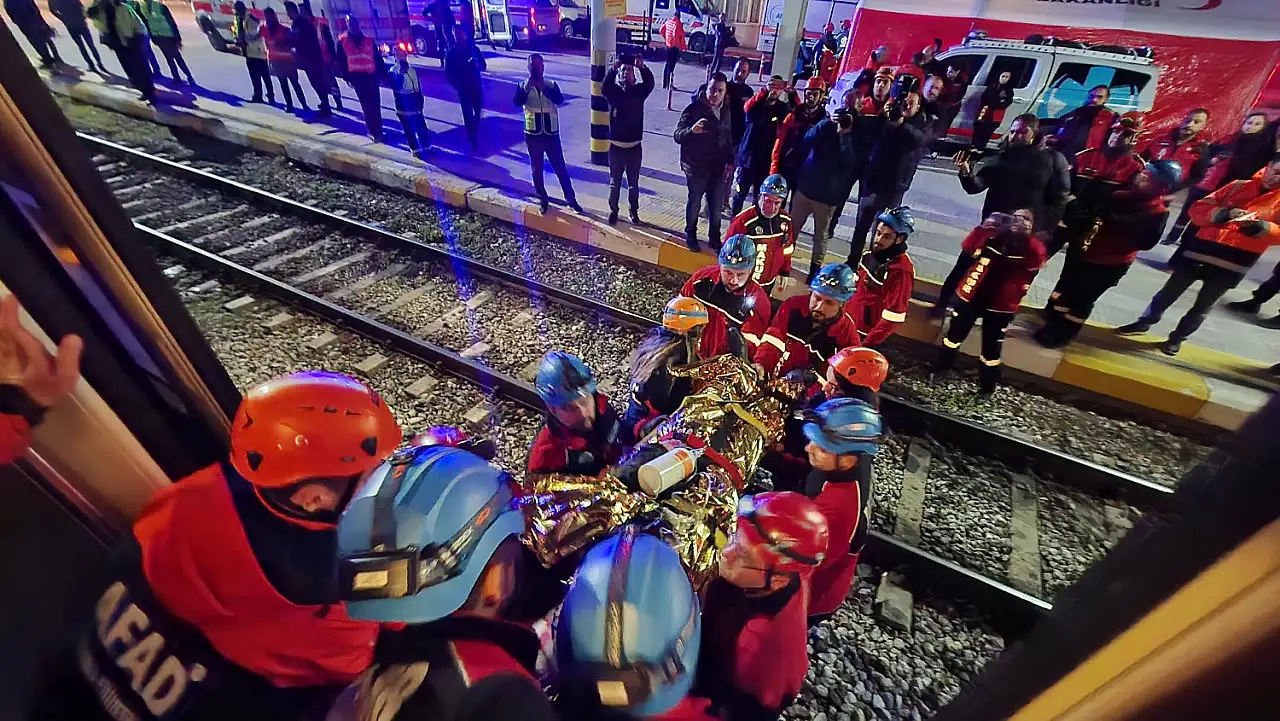 İzmir’de 6.7 şiddetindeki deprem senaryosuyla yapılan İZBAN tatbikatında, Menemen İstasyonu’nda deray eden tren ve yaralı yolcular için acil ekipler 24 dakika içinde operasyonu tamamladı.