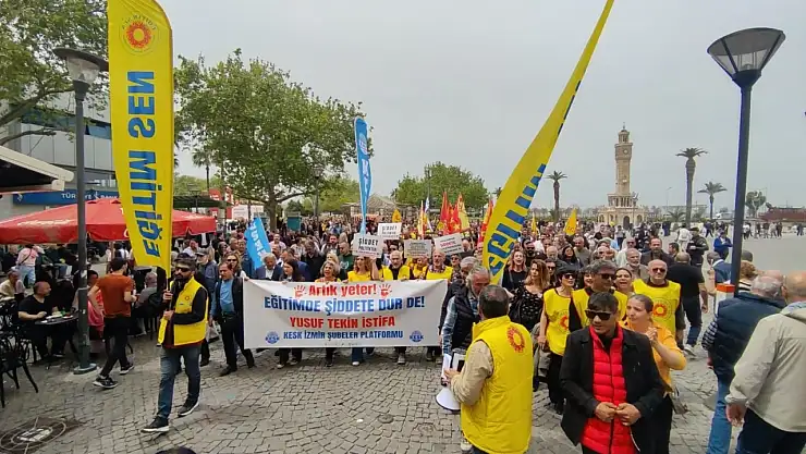KESK İzmir Şubeler Platformu ve Eğitim Sen'in düzenlediği yürüyüşte, artan okul saldırılarına tepki gösterildi, Milli Eğitim Bakanı Yusuf Tekin'in sorumluluk alması istendi.