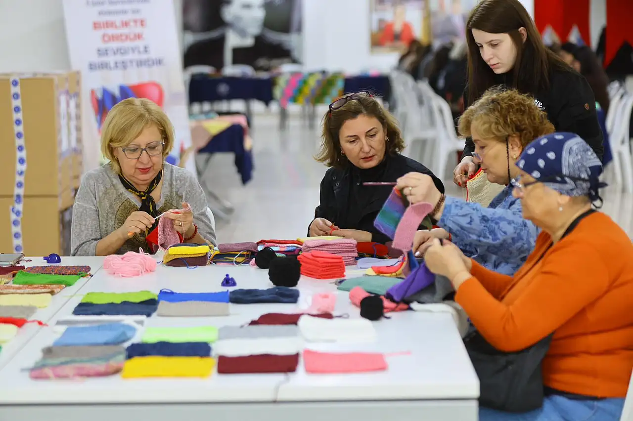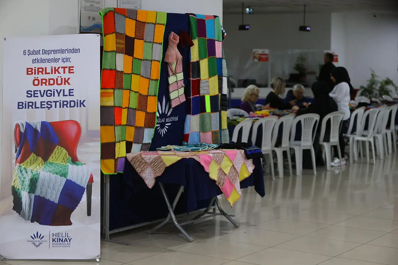 Karabağlar Belediyesi, 6 Şubat depreminin yıl dönümünde depremden etkilenen şehirlere destek olmak amacıyla anlamlı bir dayanışma projesi başlattı. “Birlikte Ördük Sevgiyle Birleştirdik” adı verilen projede gönüllüler, atkı, bere ve battaniyeleri ilmek ilmek örerek hem sıcaklık hem de moral sağladı.