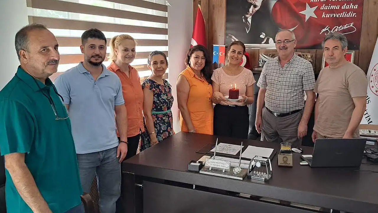 Ödemiş İlçe Milli Eğitim Müdürlüğü Özel Büro biriminde görev yapan Sema Bayraktar, Birgi Kazımpaşa Ortaokulu'na atanmasının ardından mesai arkadaşlarıyla vedalaştı.