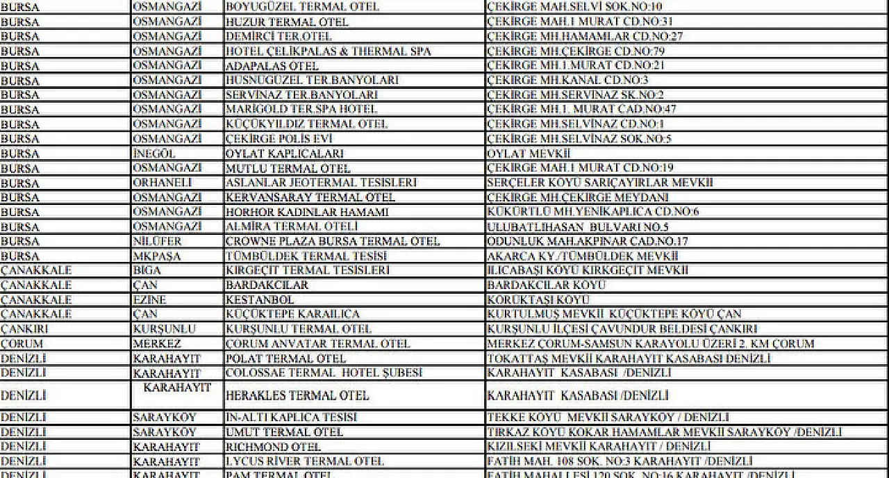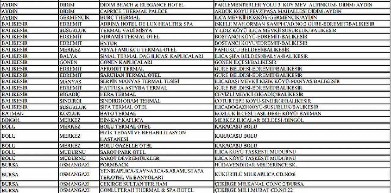 Ücretsiz kaplıca tesislerinin tam listesi için Sağlık Bakanlığı’nın resmi internet sitesinden erişim sağlanabilir.
