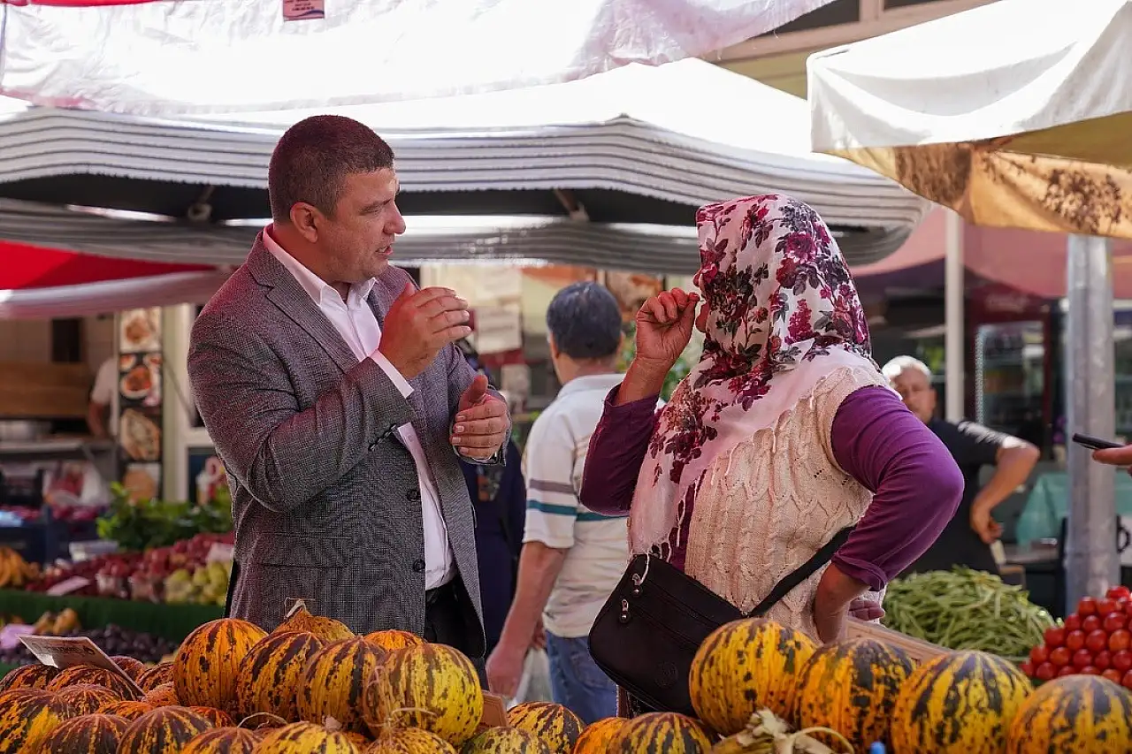 Belediye Başkanı Hayati Okuroğlu, Tire'nin en yoğun noktalarından biri olan Salı Pazarı'nda esnaf ve vatandaşlarla bir araya gelerek sohbet etti.