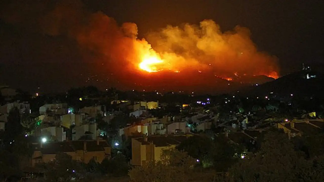İzmir'in Urla ilçesinde gece saatlerinde başlayan orman yangını ekiplerin yoğun müdahalesiyle söndürülmeye çalışılıyor.
